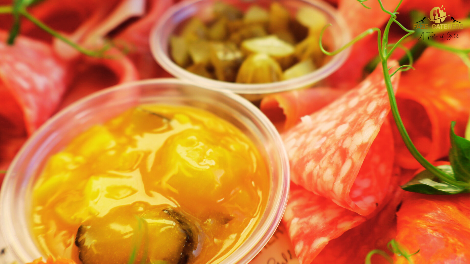 Product info: A generous selection of 10 slices each of Milano salami, chorizo, and Parma ham, served with tangy piccalilli and sweet pickled cucumbers. Perfect for sharing between 7–10 people.